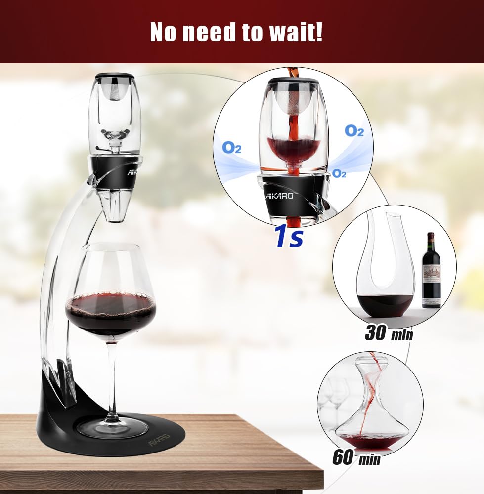 - [Practical]: The wine breather aerator accelerates the decomposition of tannins and makes red wine more fragrant. It benefited from the tower supporting, more convenient to use.