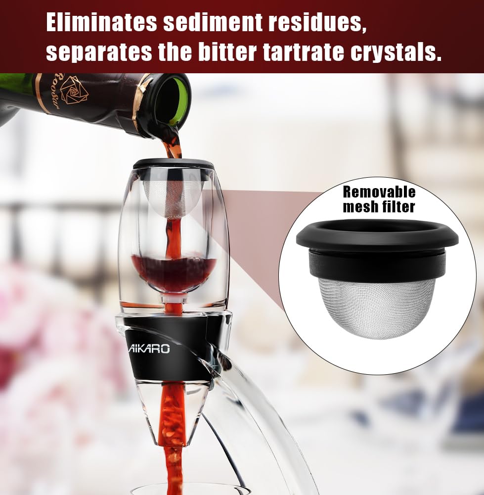 - [Built-in filter]: Removable mesh filter eliminates sediment residues and separates the bitter tartrate crystals.