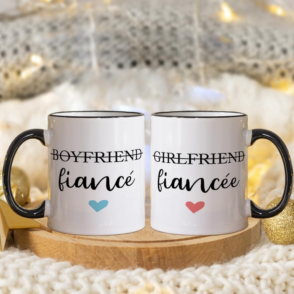Boyfriend and Girlfriend Coffee Mug Gift Set,Fiance and Fiancee Couple Mug,Engagement Gifts for Couples Newly Engaged Him Her His Hers Mr Mrs Bride Groom Bridal Shower, Valentine’s Day Gifts 11 OZ