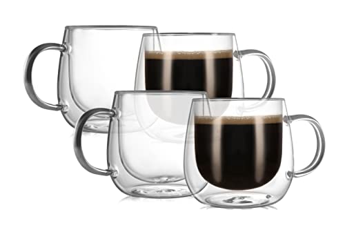 CnGlass 10oz Double Wall Glass Coffee Mugs,Clear Insulated Espresso Mugs, Glass Coffee Cups with Handle for Latte,Cappuccino,Tea,Set of 4