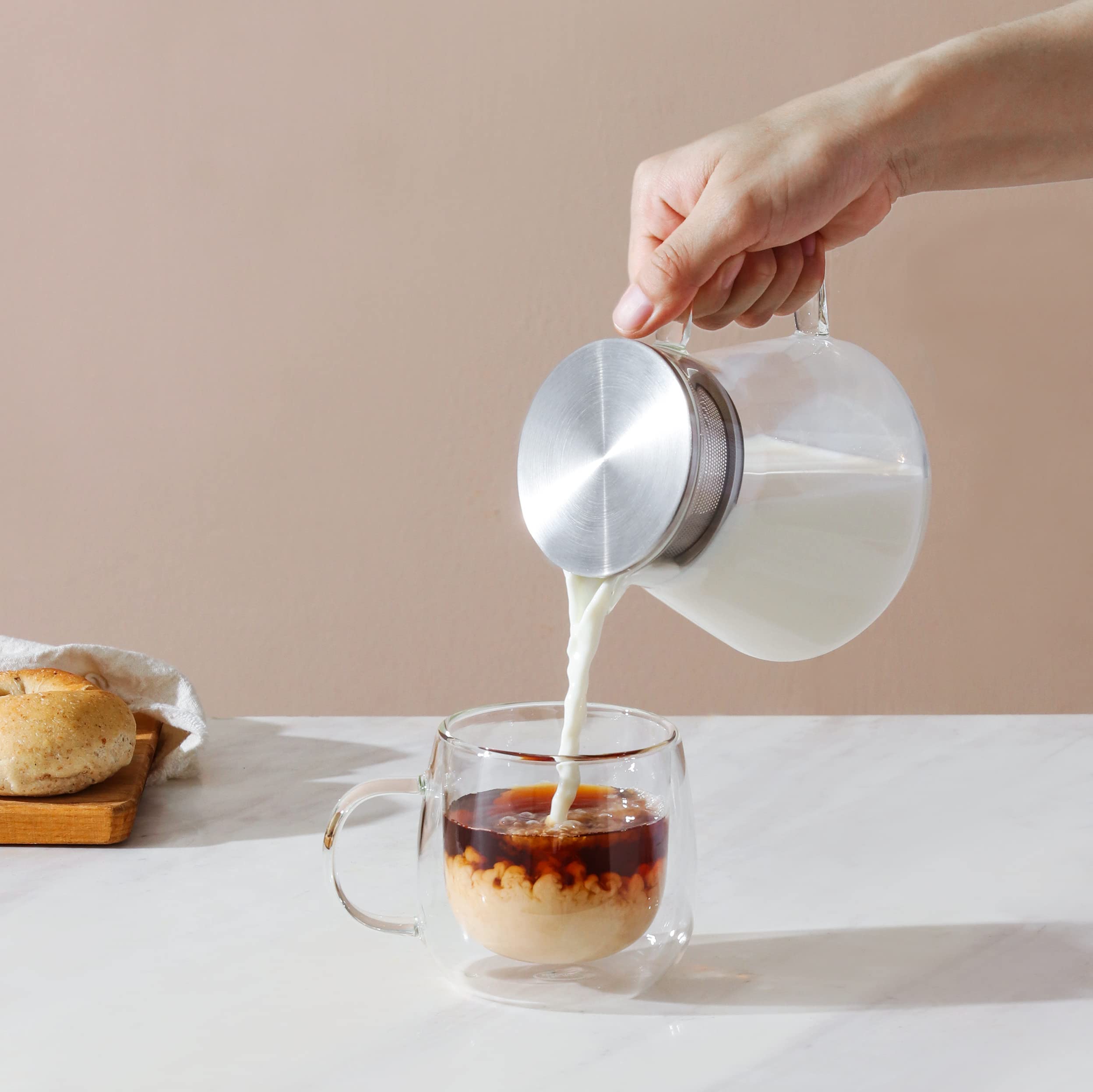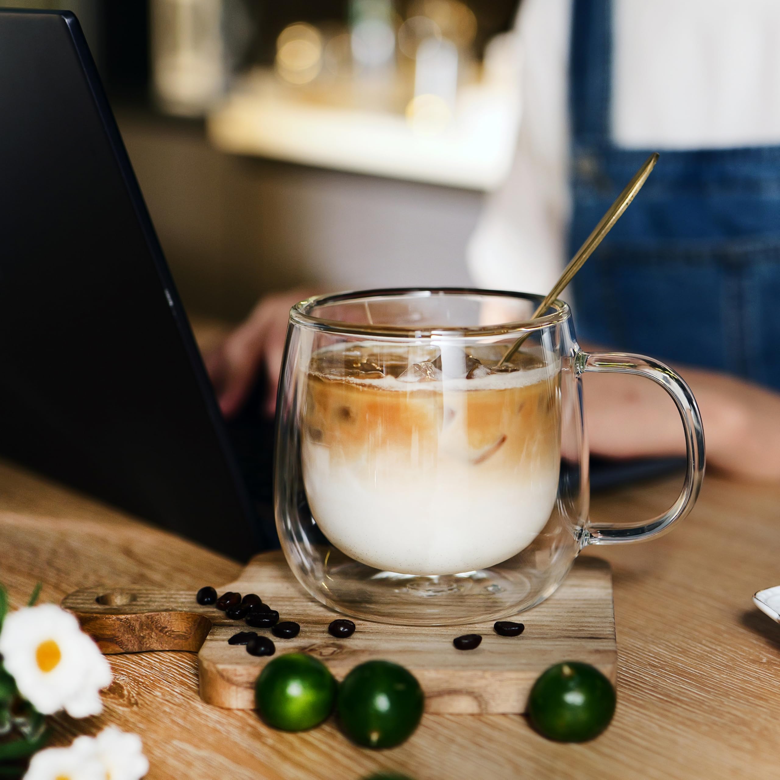 • UNIQUE DOUBLE WALLED MUG -Insulated glass coffee mug has a sleek 2 layer design that creates a dramatic optical illusion and prevents condensation.