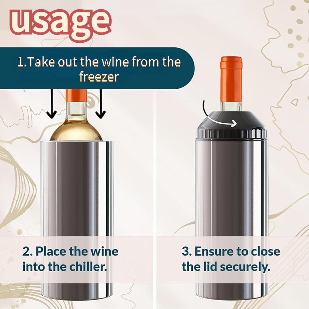 • 【Materials】Elevate wine experience with 304 stainless steel wine bottle chiller. this 30oz beer cooler is made of 304 stainless steel, fits lots of different bottle size, and is double-walled and vacuum-insulated design ensures wine, champagne, beverages remain refreshingly cold.