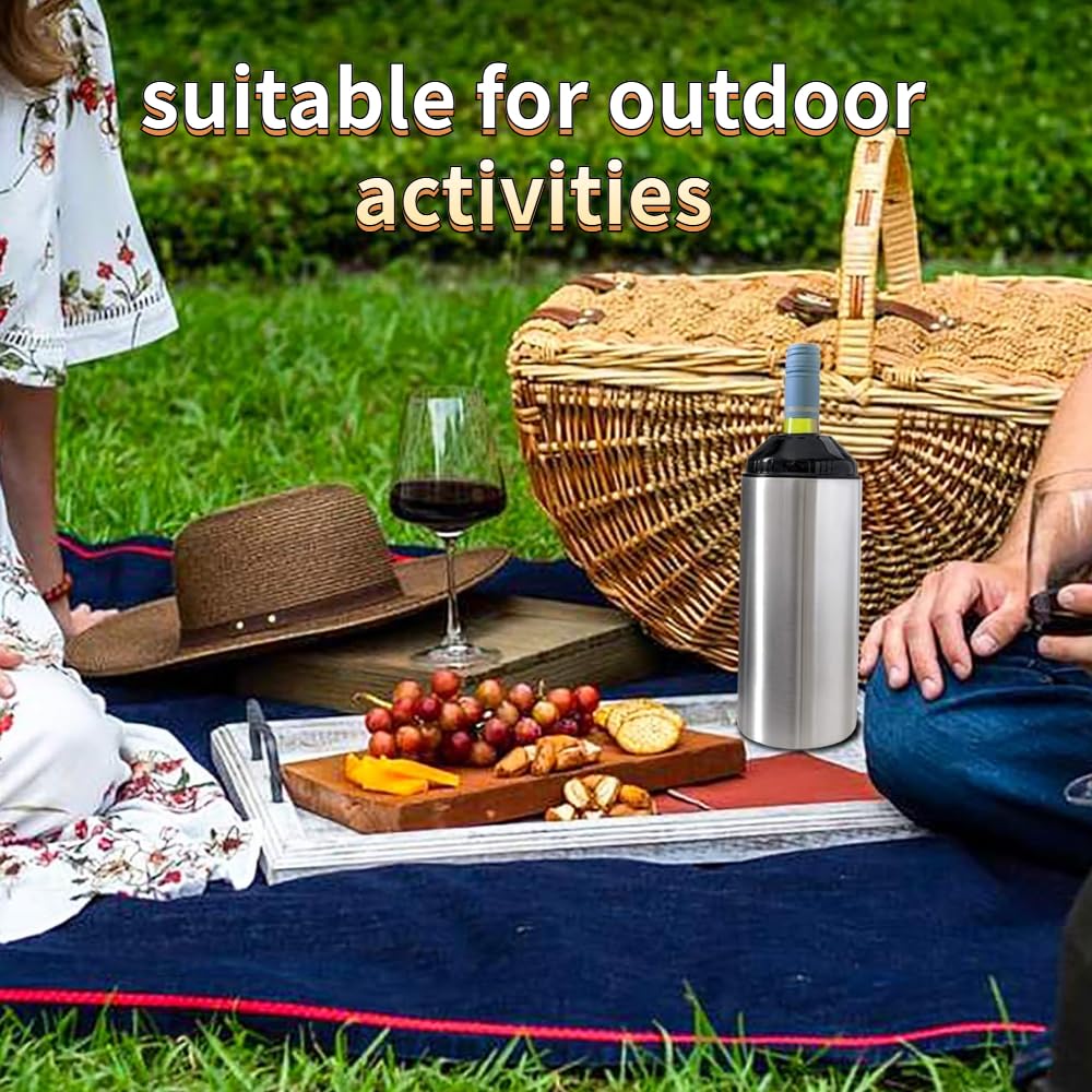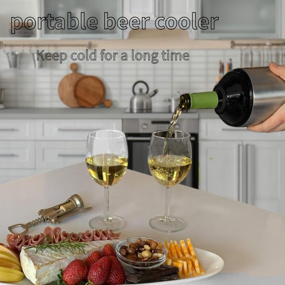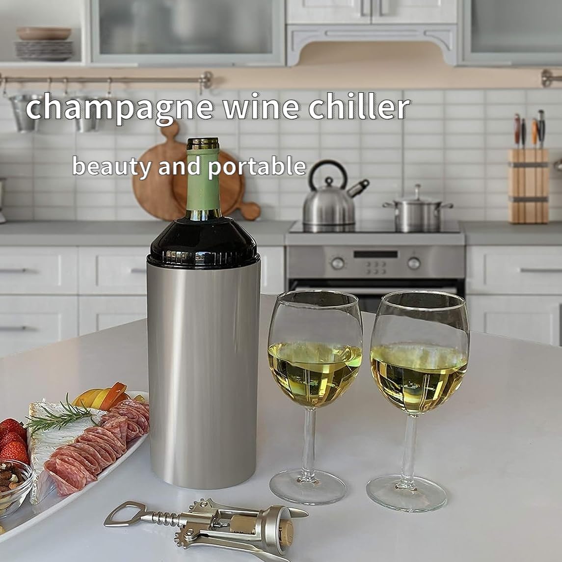 Frafuo Double-Walled Stainless Steel Wine & Champagne Chiller – Portable Insulated Bottle Cooler for Wine, Beer, and Cans-Keeps Drinks Cold for Hours & Fits Most Standard Sized Bottles