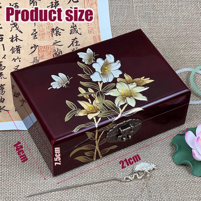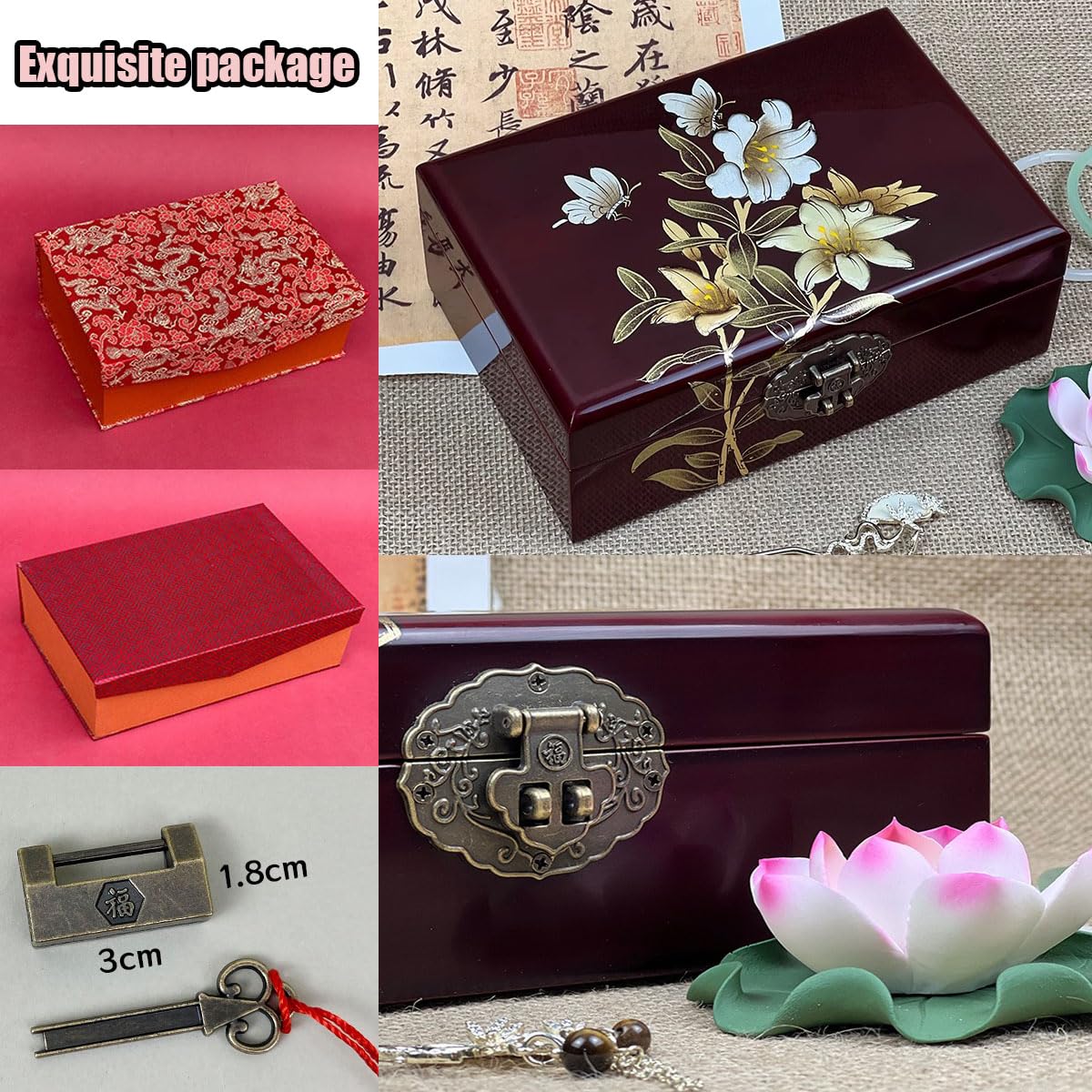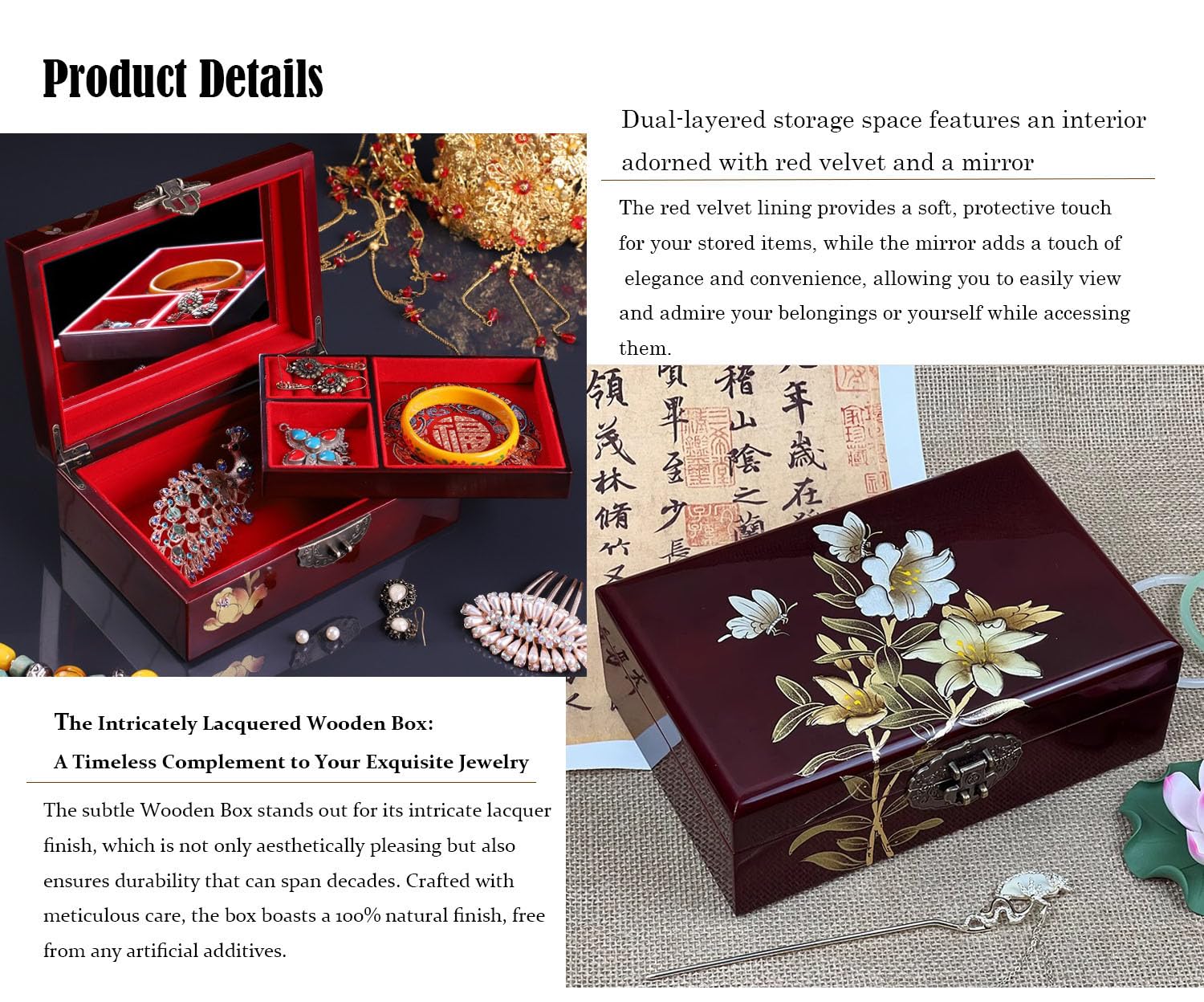 - 【Exquisite Handcrafted Jewelry Storage】 – Meticulously made by skilled artisans using premium natural wood and eco-friendly plant-based lacquer, this vintage jewelry box ensures long-lasting elegance while keeping your necklaces, rings, earrings, and bracelets neatly organized.