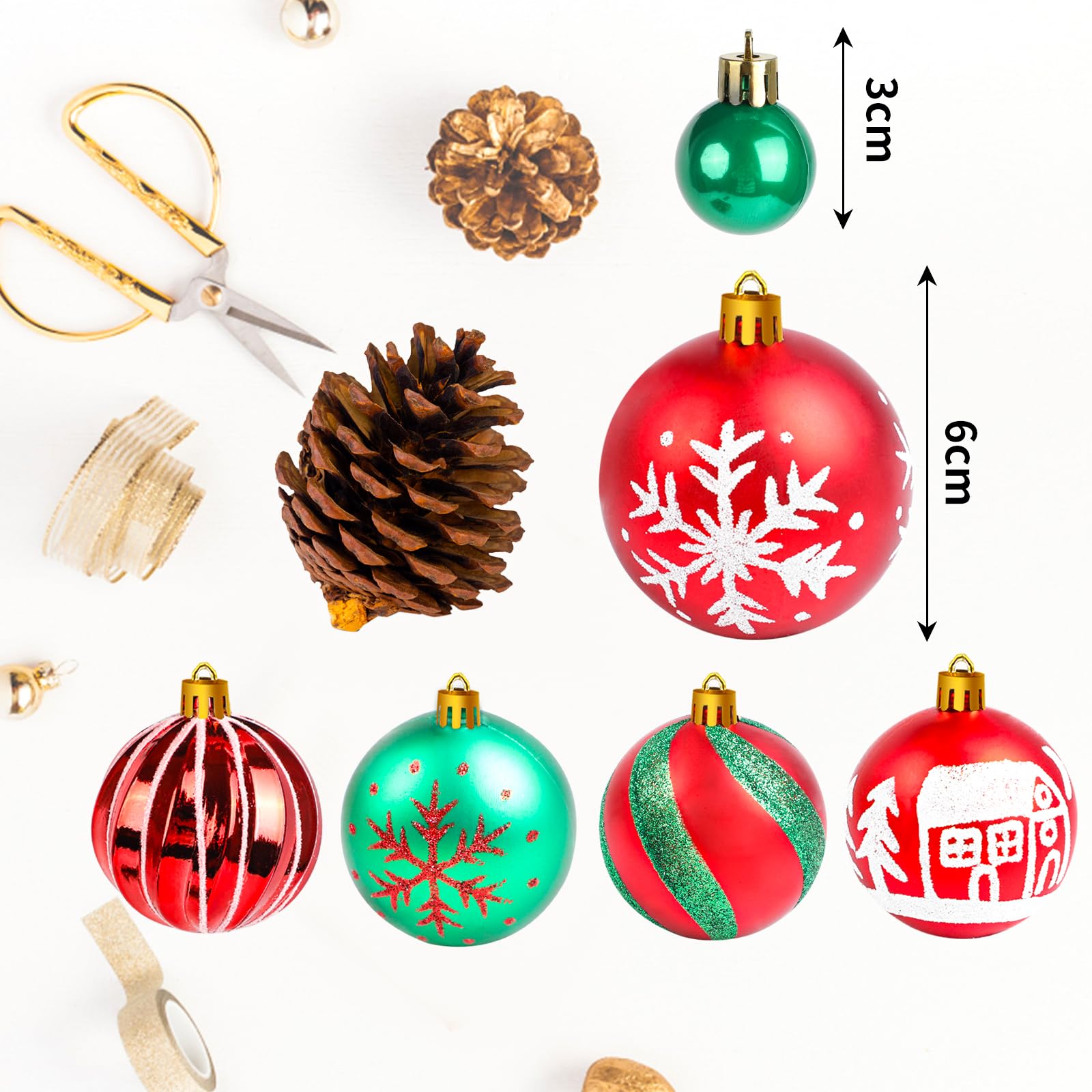 - Package contents: 12 Christmas baubles with a diameter of 6 cm and 32 Christmas baubles with a diameter of 3 cm, including different styles such as matte, shiny. Detailed details can be found in the pictures.