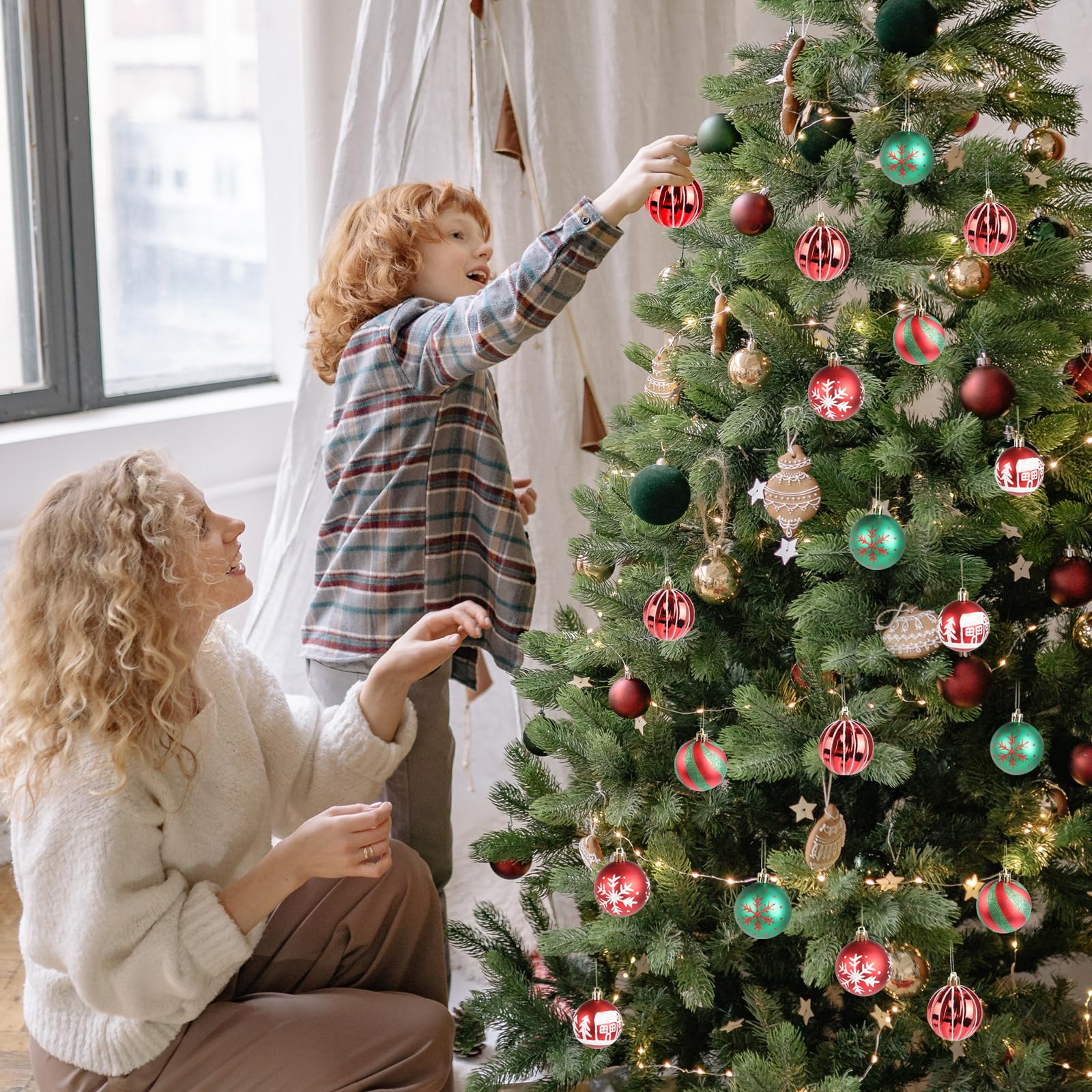 - Material: the Christmas baubles are made of environmentally friendly PET plastic, are odourless, do not fade easily, are strong and durable and safer than glass decorations. Christmas baubles are made of hard plastic, waterproof and durable, suitable for indoor and outdoor use.