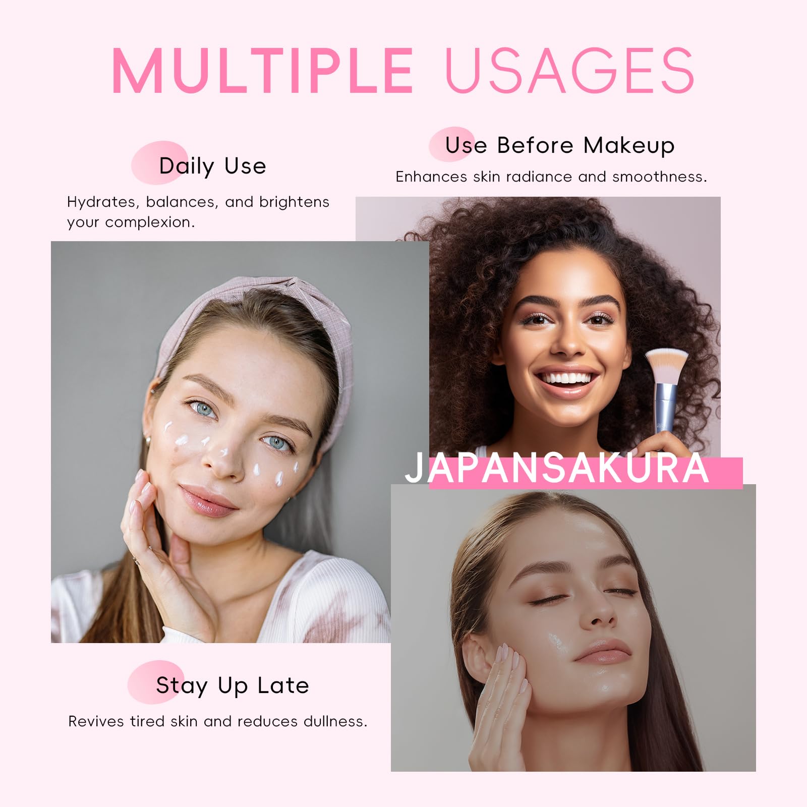 - 【Anti-Aging Skincare for Women】Our sakura serum for face and cream are infused with Sakura extract, hyaluronic acid, and niacinamide to stimulate collagen production, smooth fine lines, and even out skin tone. Sakura skincare gift sets for women brightens and smooths the skin, reduces puffiness, eye bags, crow’s feet, and dark circles, while lifting and tightening the skin around the eyes, making your complexion more radiant and youthful.