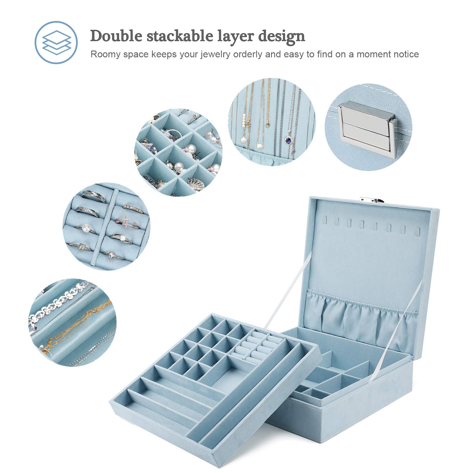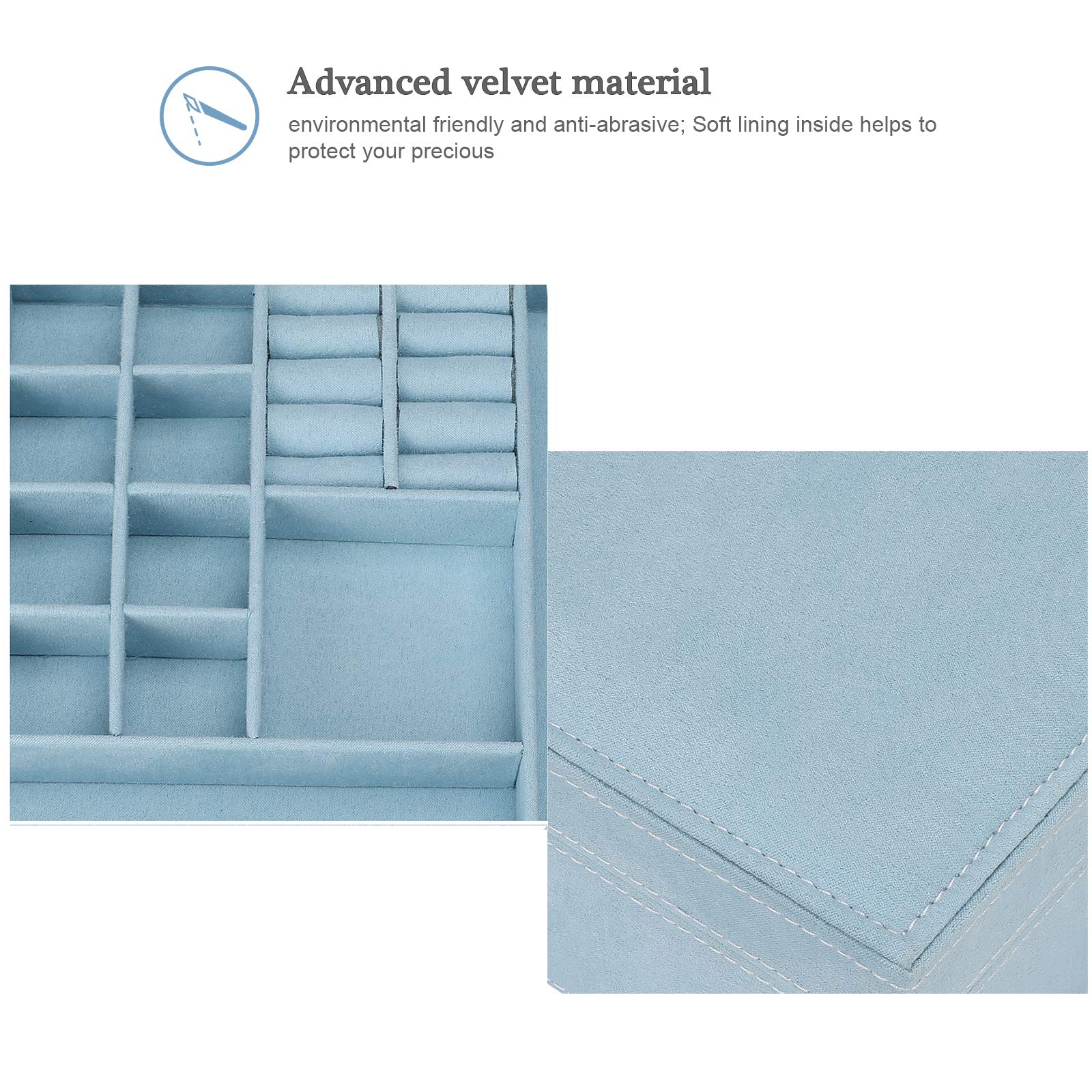 • ❤️ Jewelry storage case is made of advanced velvet material, environmental friendly and anti-abrasive; Soft lining inside helps to protect your precious items from scratches meanwhile offering you a comfortable touch