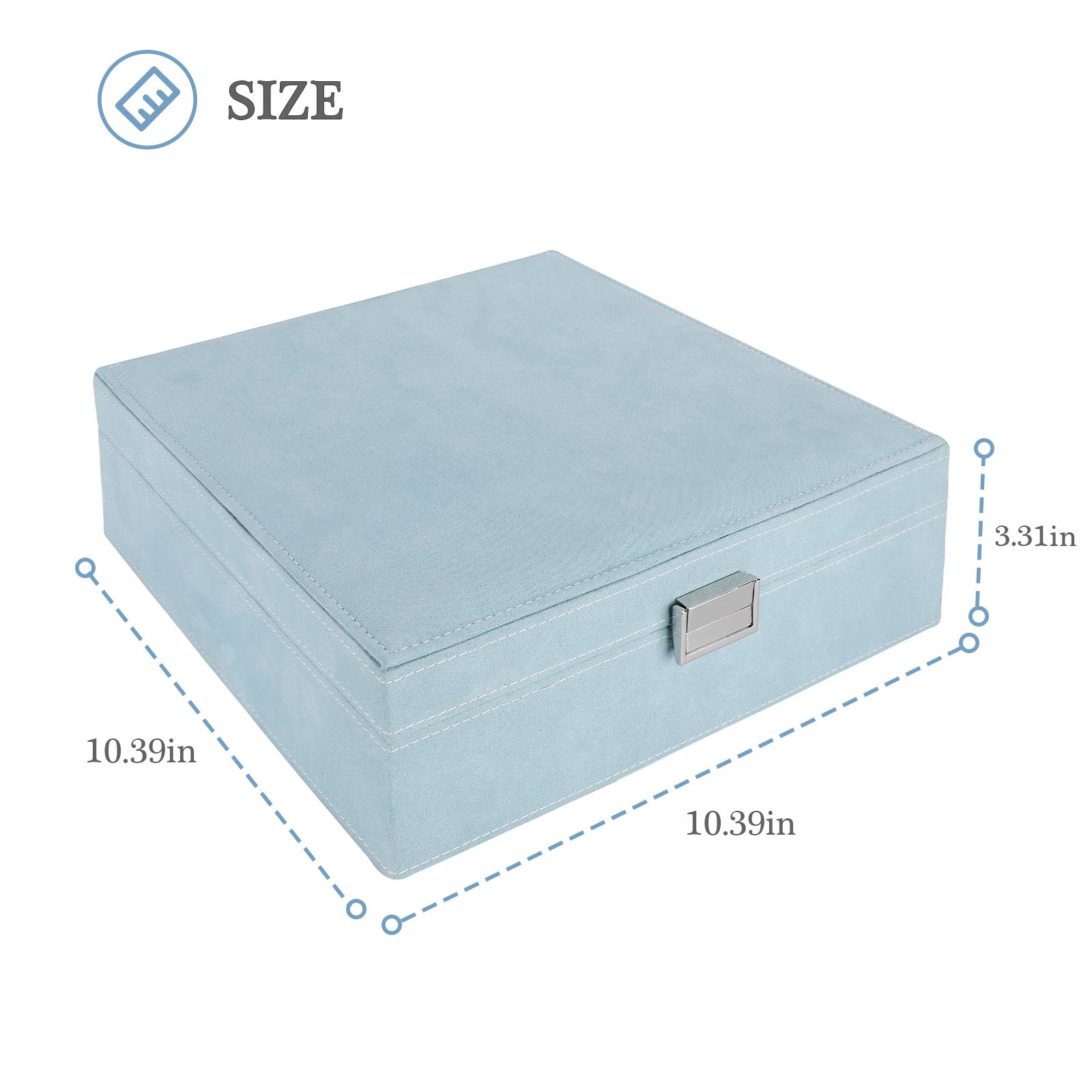 • ❤️ Jewelry box dimension: 10.39″ x 10.39″ x 3.31″; Double stackable layer design with 32 different sized compartments for organizing all types of jewelry, including earrings, bracelets, rings necklaces, etc. Roomy space keeps your jewelry orderly and easy to find on a moment notice