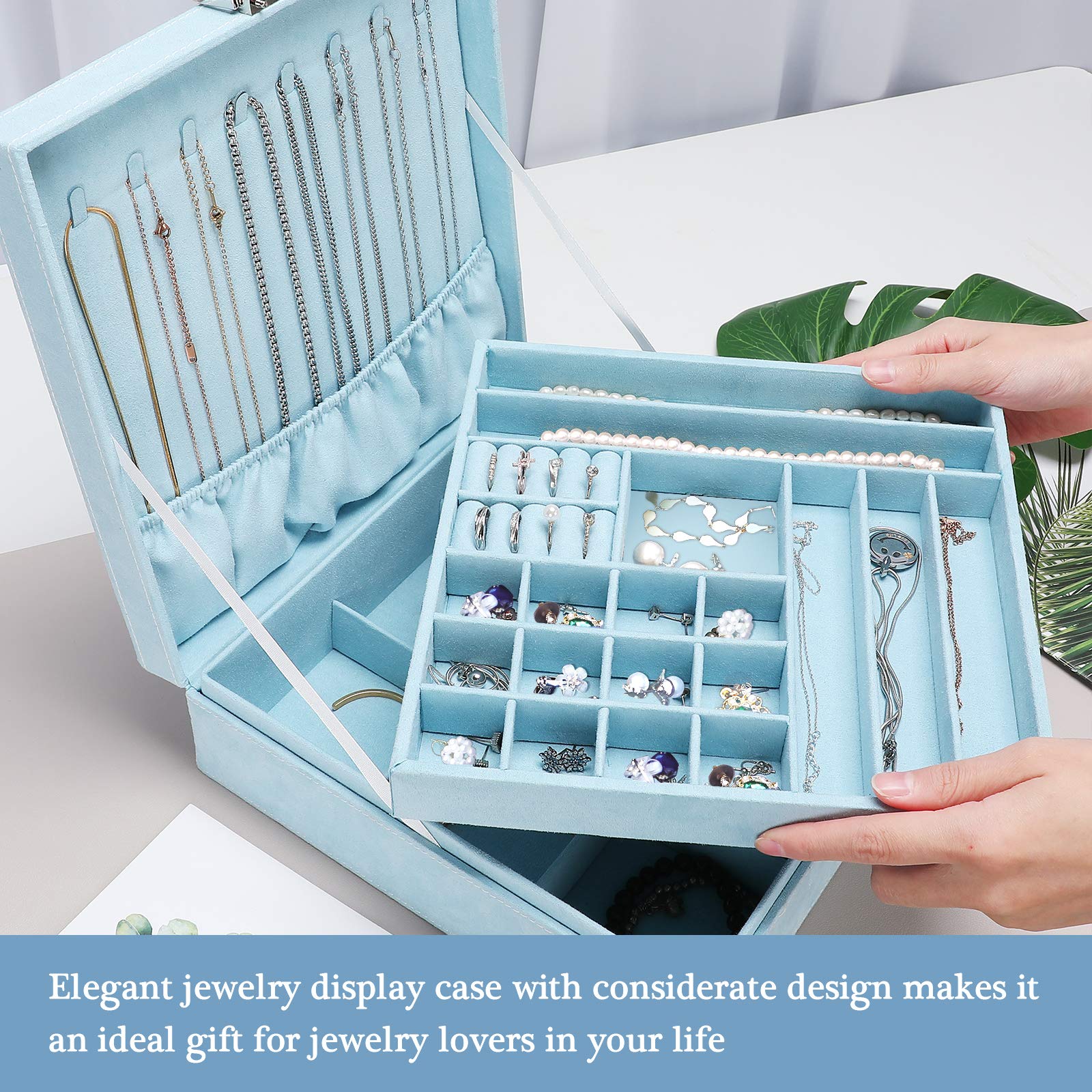 • ❤️ Elegant jewelry display case with considerate design makes it an ideal gift for jewelry lovers in your life, especially suitable for birthday, Christmas, wedding day, Valentine’s Day ,Mother’s day, Anniversary Day and so on
