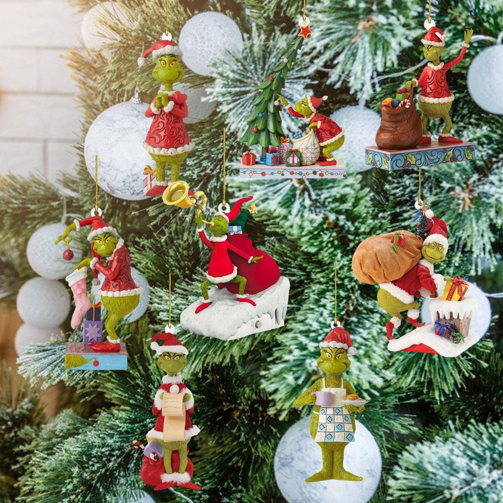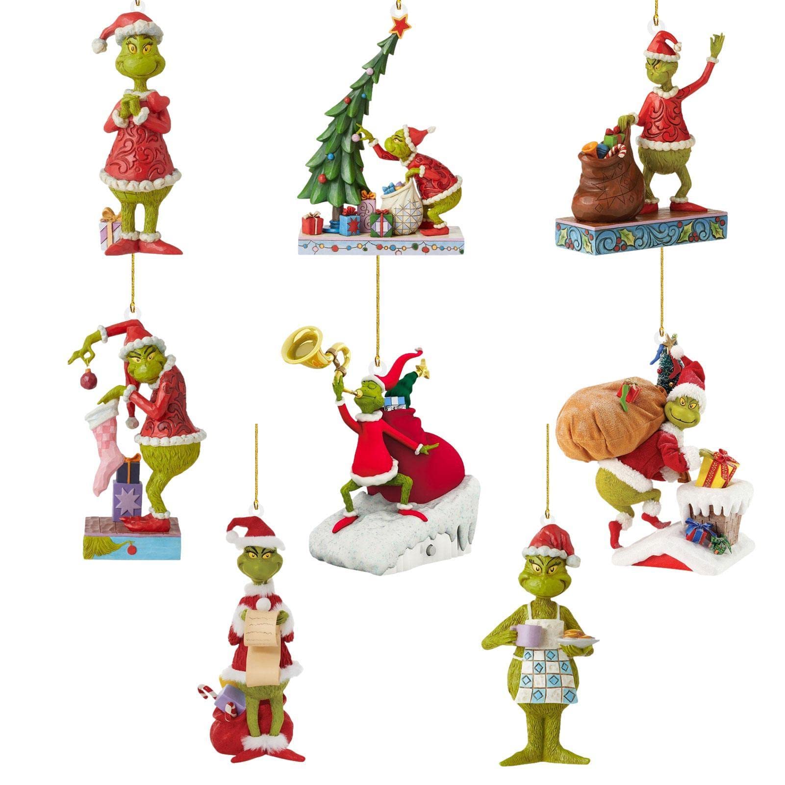 Set of 8 Grinchs Christmas Tree Ornaments, 2D Cute Hanging Grinchs Christmas Decorations, 9cm Acrylic Ornaments Party Supplies Kids Gift 2022 Holiday Decor