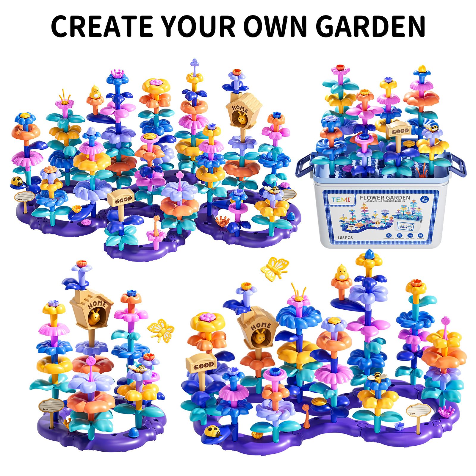 - 165PCS DIY Your Own Garden – These flower garden building toys which attracts kids to build, match, classify, and mix various components to create different flowers,thereby deepening their understanding of plants.Great girl toys for 3 4 5 6 year old girls to take free time.Create your own unique garden and bringing unlimited fun to little girls.
