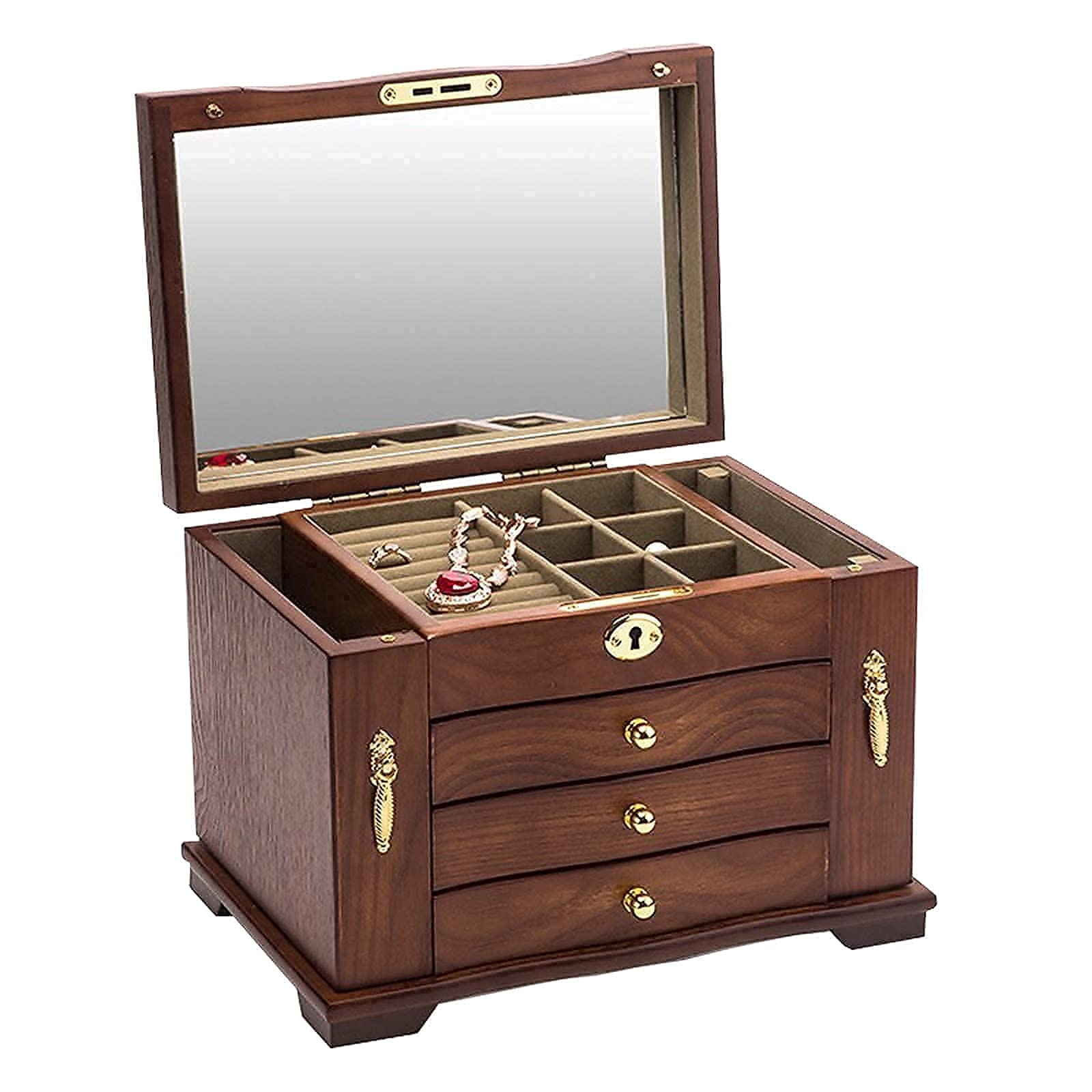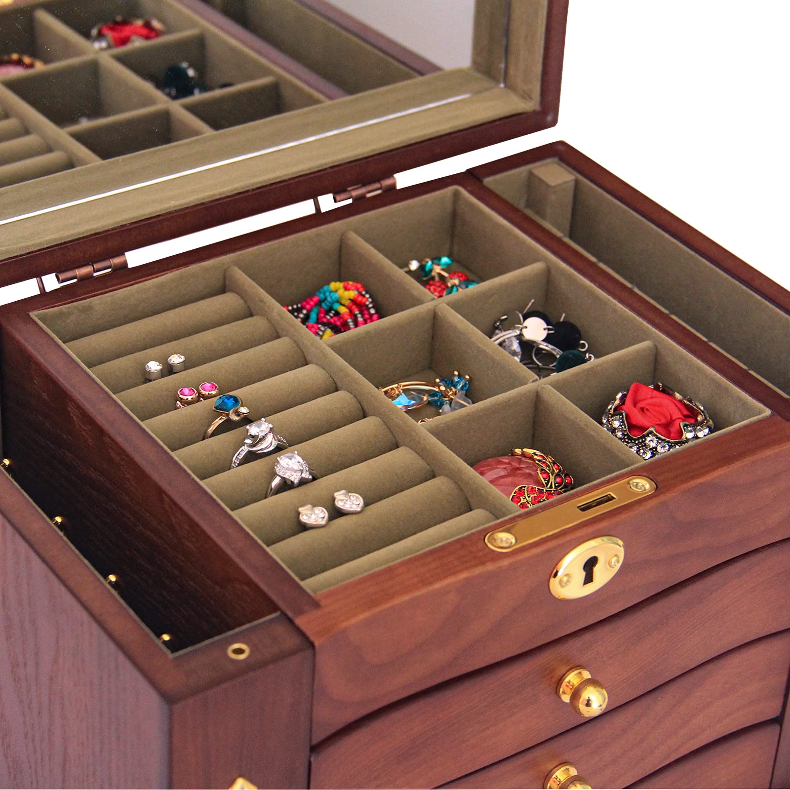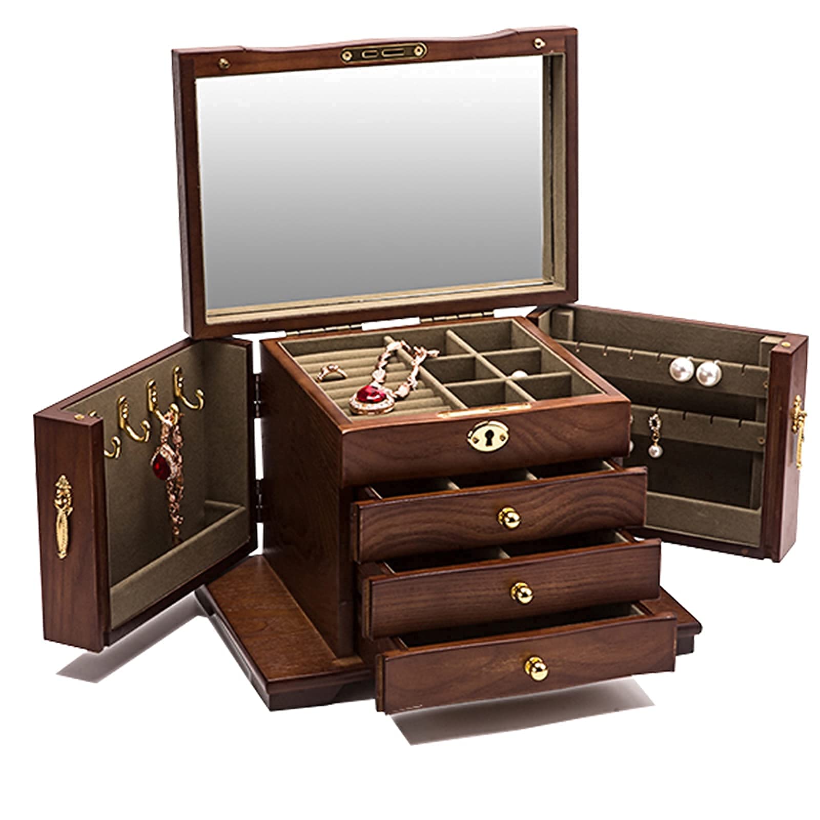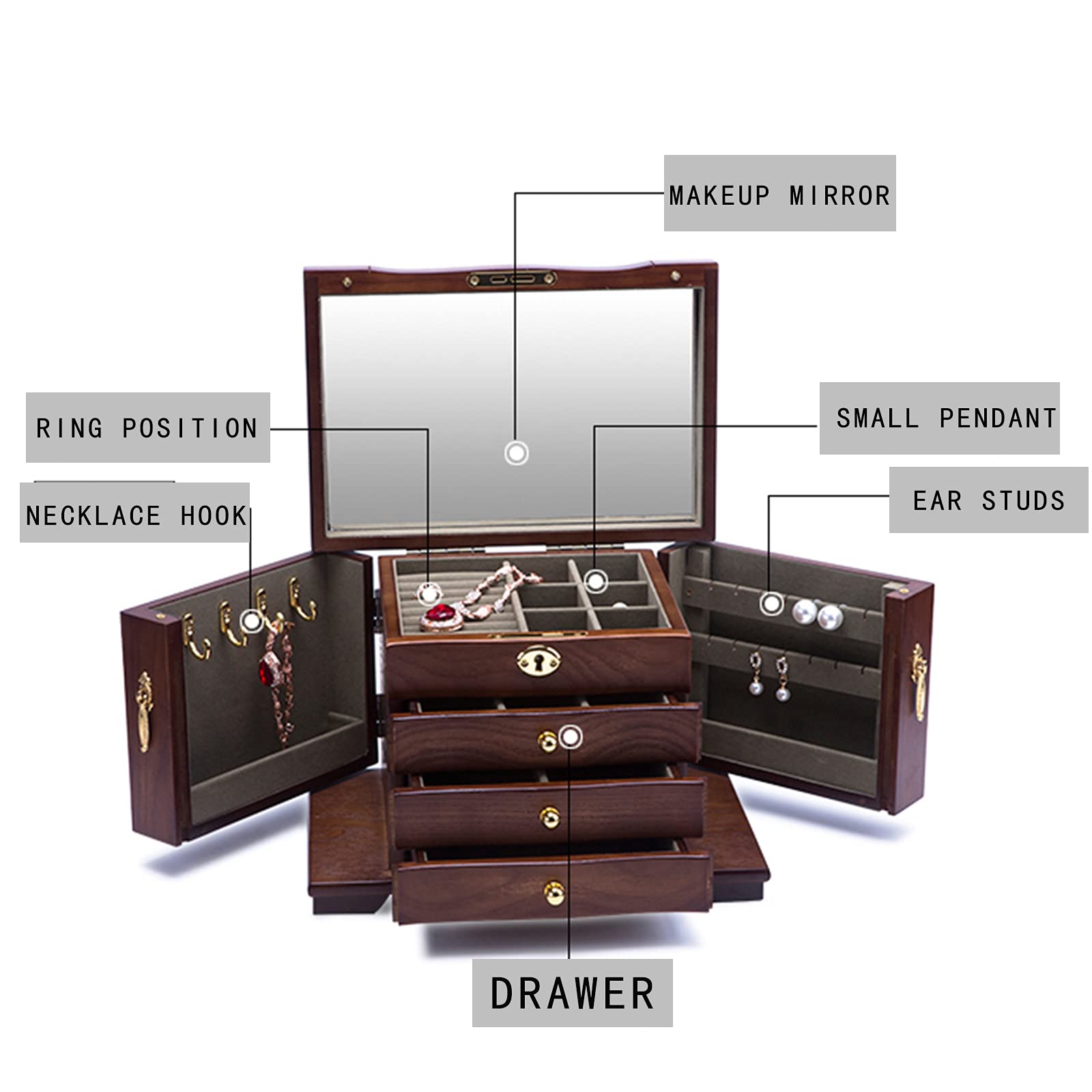 TITISKIN Large Wooden Jewelry Box for Women with lock Mirror Storage Box Organizer girls small bulk stand up vintage gift