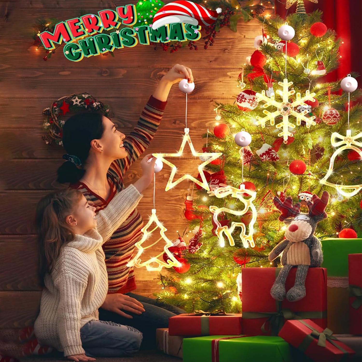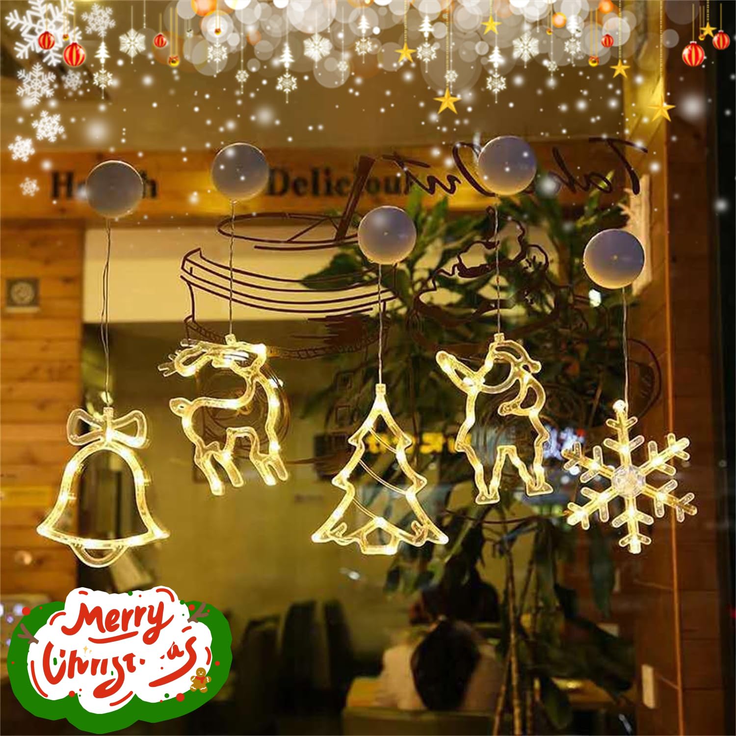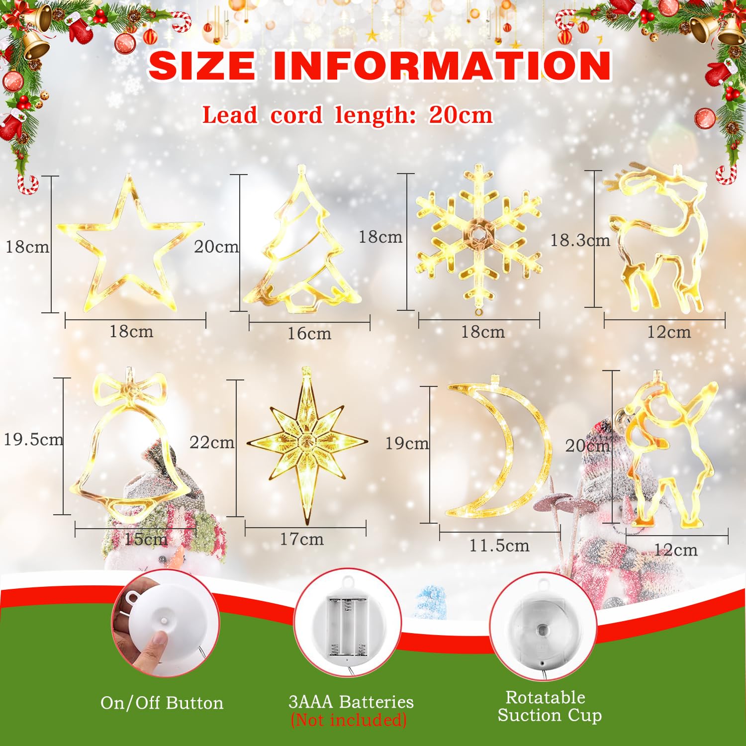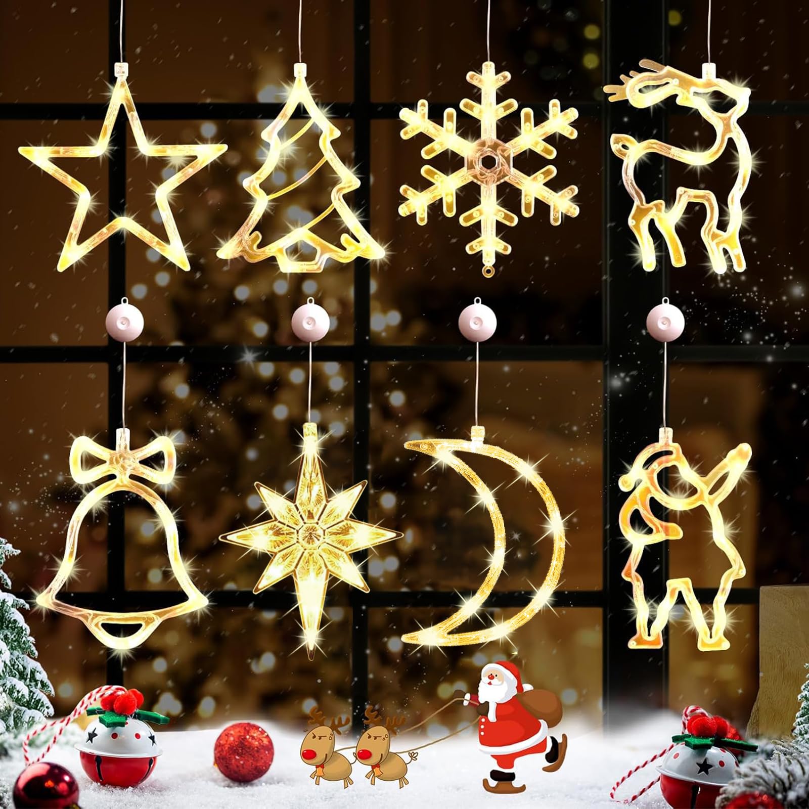 Yaberry Grove 8pcs Christmas Window Decoration Lights,Light Up Battery Operated Silhouette Lights Bell Tree Deer Snowflake Star Santa Claus Moon Shaped with Suction for Xmas Party Gift Indoor Décor
